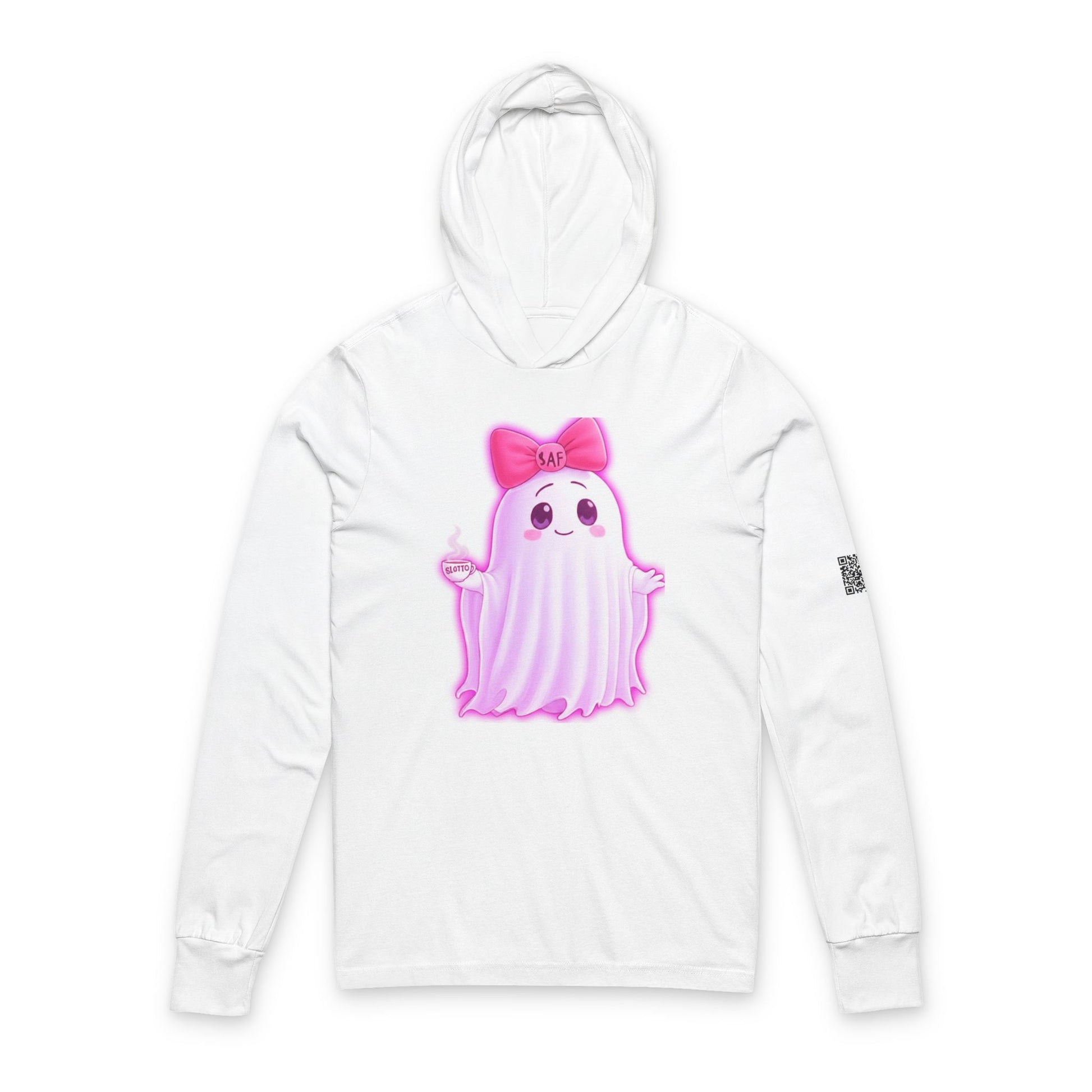Introducing a fun and cozy Unisex Hooded Long Sleeve Tee, perfect for adding a touch of whimsy to your wardrobe. This tee features an adorable ghost design with a playful bow, capturing the spirit of Halloween and making it an essential piece for the season. It's designed for those who love to celebrate spooky festivities in style and comfort. The soft fabric and relaxed fit make it ideal for casual outings, cozy nights in, or festive gatherings with friends and family. This tee is perfect for kids and adults alike, ensuring everyone can enjoy a lighthearted vibe during Halloween parties, trick-or-treating, or simply enjoying the spooky atmosphere of October. Additionally, it’s a great gift for anyone who loves ghosts, Halloween fans, or those who appreciate unique, casualwear. Embrace the spirit of the holiday with a wearable piece of art that stands out!